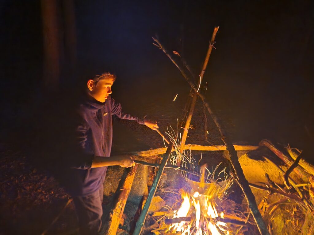 Prvního večera jsme se utábořili v Útulně u rybníka Velký Prudný, kde jsme také prověřili kulinářské dovednosti vařením gulášku v kotlíku na ohni.